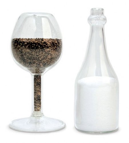 Add cheer to your meal! Wine glass and bottle shaped salt and pepper shakers. Glass with rubber stoppers. Each shaker measures 4 x 1.5-inches diameter. Read more...