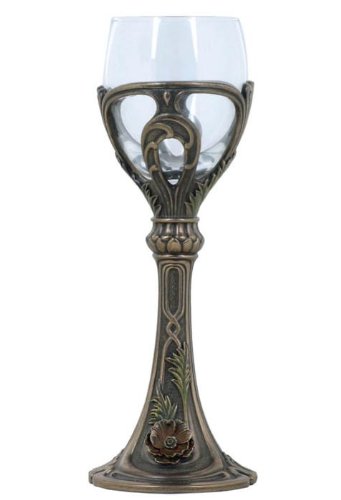 Free Shipping 7.75 inch Bronzehue Chalice holds Wine Glass Poppy and Leaf Motif @ Amazon.com