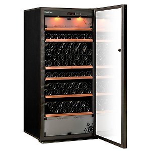 Individually handcrafted in a thirty-step process, the EuroCave Performance 183 will provide years of smooth, quiet, vibration-free service with the utmost ease of operation. Stored in these true wine cellars, your finest vintages will develop to their full potential. Also the security lock and key will keep your valuable collection protected. Available with either 1-Temperature Zone, 2-Temperature Zones or 3-Temperature Zones. The 1-temperature cabinet re-creates the natural deep cellar and ensures a constant optimum temperature between 55°F and 57°F, but has a temperature range of 41°F to 68°F. The hygrometer provides an LCD display to advise of humidity range. Built-in alarm alerts when humidity level has fallen below 50%. Water can be added to cassettes to increase humidity to optimum range of 50-80%. The 2-temperature cabinet has 2 distinct compartments; the aging compartment (48-59°F) for storing and aging your wine and the serving compartment (41-54°F) for chilling white wines and champagne for service. The 2-temperature unit does not contain a hygrometer or a lava rock cassette. The 3-temperature cabinet has 3 distinct compartments; The room temperature compartment at the top keeps red wines at their recommended serving temperature (59-72°F), the aging compartment (48-59°F) for storing and aging your wine and the serving compartment (41-54°F) for chilling white wines and champagne for service. The 3-temperature unit does not contain a hygrometer or a lava rock cassette. *Capacity is based off using standard 750 mL size bottles, using larger Pinot Noir/Rhone size bottles may limit the capacity. If you would like to store larger bottles you can easily adjust the height of any of the shelves. Read more...
