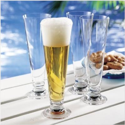 Invoking the spirit of Italian vineyards, Lenox has created the Tuscany Classics line of stem- and barware with elegant proportions and beautifully balanced shapes. Crafted from full-lead crystal, these pilsner glasses offer beer connoisseurs a drinking vessel as attractive and sophisticated as any piece of stemware. Perfect for showing off beer's fine color, each glass's trumpet shape is comfortable to hold and to drink from, thanks to a substantial stem and very slightly flared lip. The glasses stand 9-1/4 inches tall with a 3-1/4-inch diameter mouth and hold 18-1/2 ounces each. The set of four comes with a lifetime replacement policy. Washing by hand is recommended. --Emily Bedard