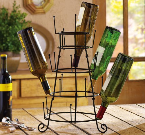 Bottle Holder: Stack your empty wine bottles on this rack and create a decorative pyramid of glass! Doubles as a coffee mug rack, too. Metal. Approx. 12 1/2"Dia. x 20"H.... Read more...