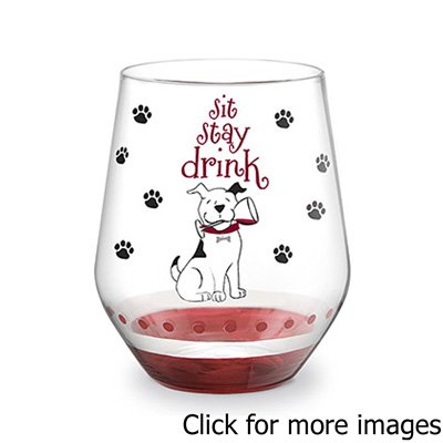 Free Shipping Wine Glass "Sit... Stay... Drink", Hand Painted Stemless Glassware @ Amazon.com