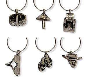 Set of Six Wine Glass Charms as shown. The Ring allows easy attachment to any stemware. Packaged in a Holiday Gift Box, with window. Read more...